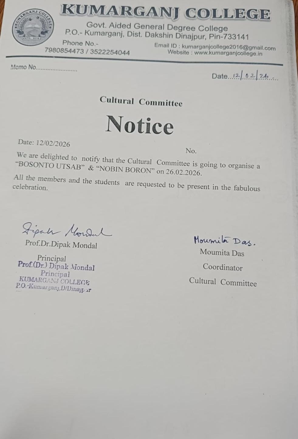 Notice for Cultural Committee